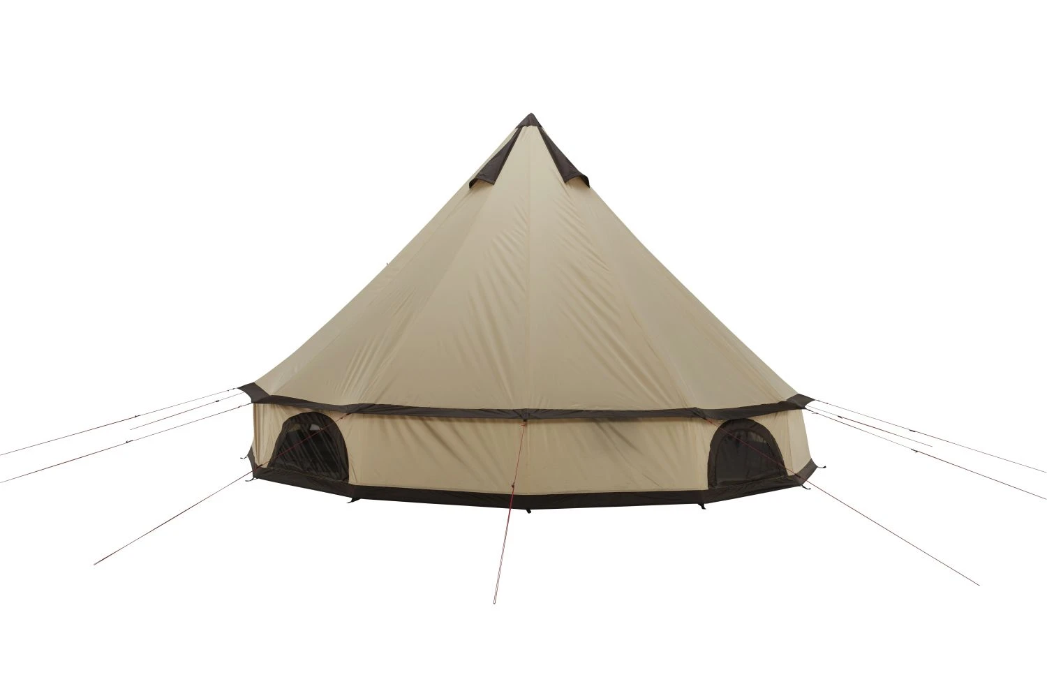 Das Grand Canyon Indiana 8 Zelt ist ein klassisches Rundzelt mit einer senkrechten Mittelstange und einem vormontierten A-Rahmen zur Stützung des großen Zelteingangs. Es bietet Platz zum Schlafen für bis zu 8 Personen oder ausreichend Platz als Treffpunkt am Tag für größere Gruppen. Die eingenähte Bodenwanne schützt vor Insekten und garantiert ein einfaches Aufbauen des Zeltes. Die großen Belüftungsöffnungen mit Abdeckung und die Moskitonetze auf der Außenplane sorgen für eine hervorragende Luftzirkulation und ein stets angenehmes Raumklima im Innenzelt.