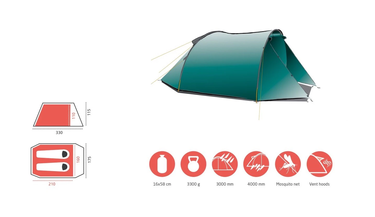 ROBSON 2 ist das neueste der GRAND CANYON-Tunnelzelte. Die einheitliche Höhe im Innenzelt und die vordere Apsis machen ROBSON 2 zum idealen Begleiter für Trekking-, Wander- und Campingausflüge. Bietet ausreichend Platz für zwei Personen mit Ausrüstung. Hervorragende Windbeständigkeit an der Längsseite. Die Moskitonetze am Innenzelt und die großen Belüftungsöffnungen mit Abdeckung auf der Außenplane sorgen für eine hervorragende Luftzirkulation und ein stets angenehmes Raumklima im Innenzelt.