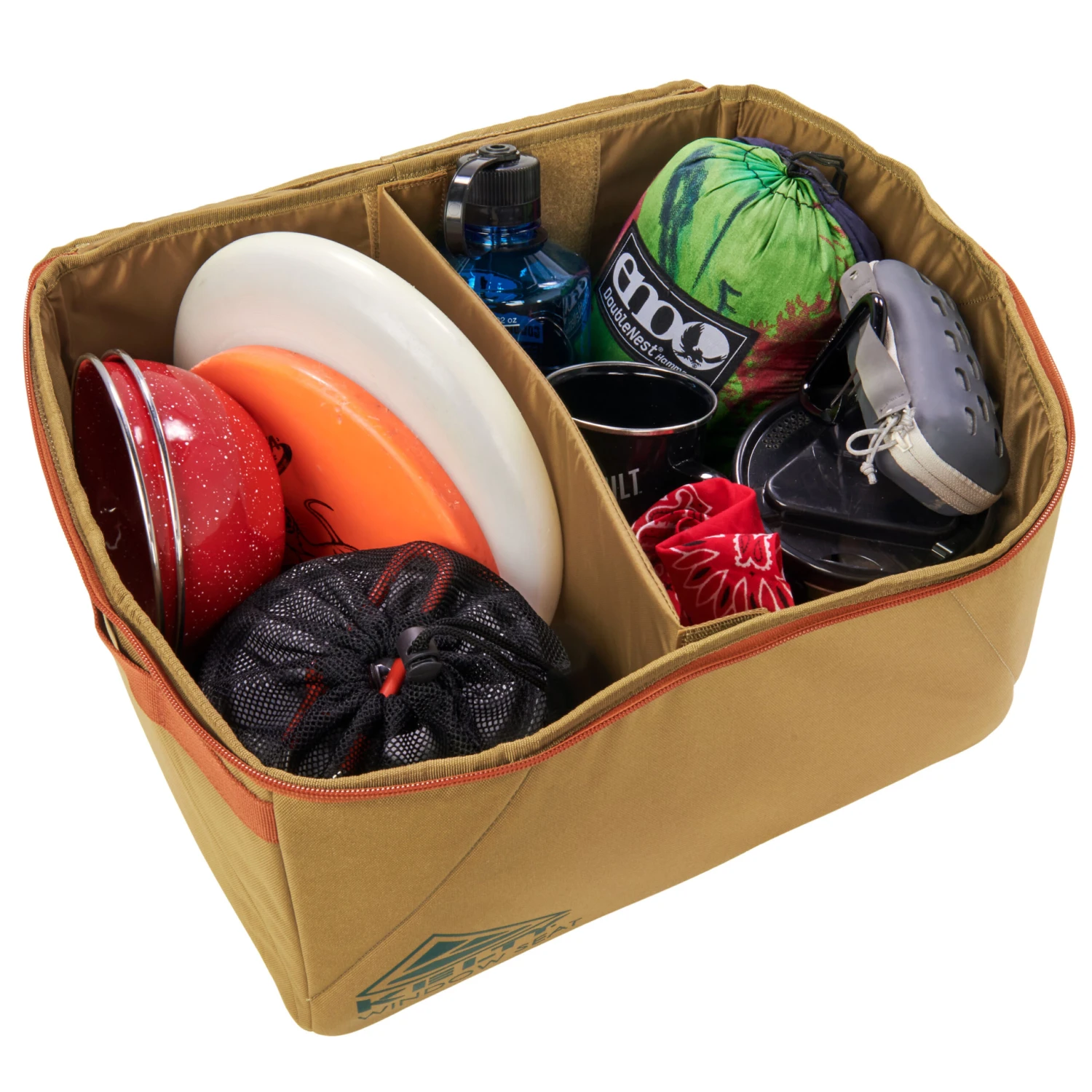 Wenn Sie wissen, wie man ein Auto packt, wissen Sie auch, dass alles seinen Platz hat. Oder? Die Kunst ist es aber dann, die Sachen schnell wiederzufinden, sobald man angekommen ist. Mit der Kelty Window Seat Campingtasche verlieren Sie die wesentlichen Sachen nicht aus den Augen, egal wohin der Weg Sie führt. Diese gepolsterte Campingtasche ist mit einer durchsichtigen Oberseite ausgestattet, damit Sie Ihre Ausrüstung sicher und jederzeit zugänglich aufbewahren können. Passen Sie die herausnehmbaren Innenteile für eine individuelle Einteilung an und vertrauen Sie darauf, dass das robuste 600D-Außenmaterial ein Leben lang hält.