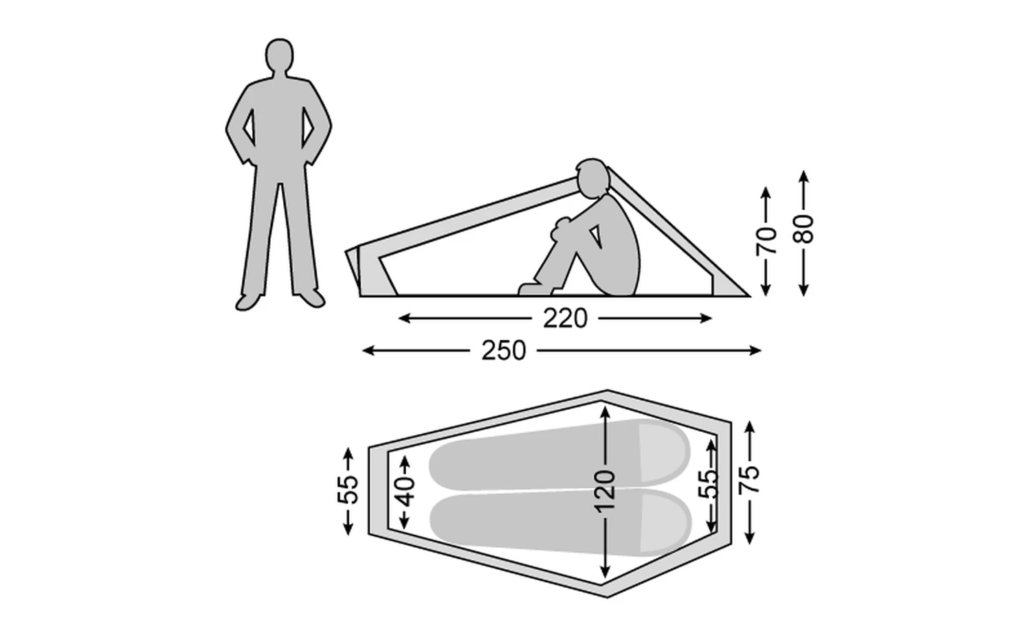 Außenzelt: 100 % Nylon 26g/m2, 580 TC, Rip Stop, double side silicon 3 Layer