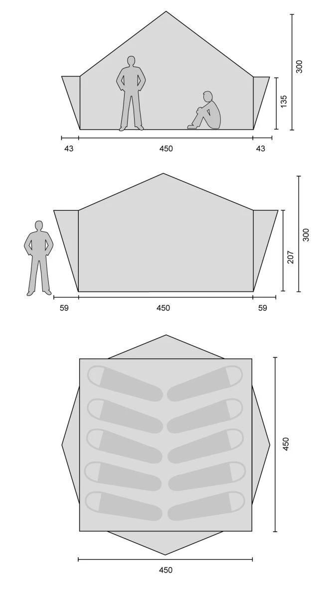 • Größe Überzelt (LxBxH) : 450 x 450 x 300 cm