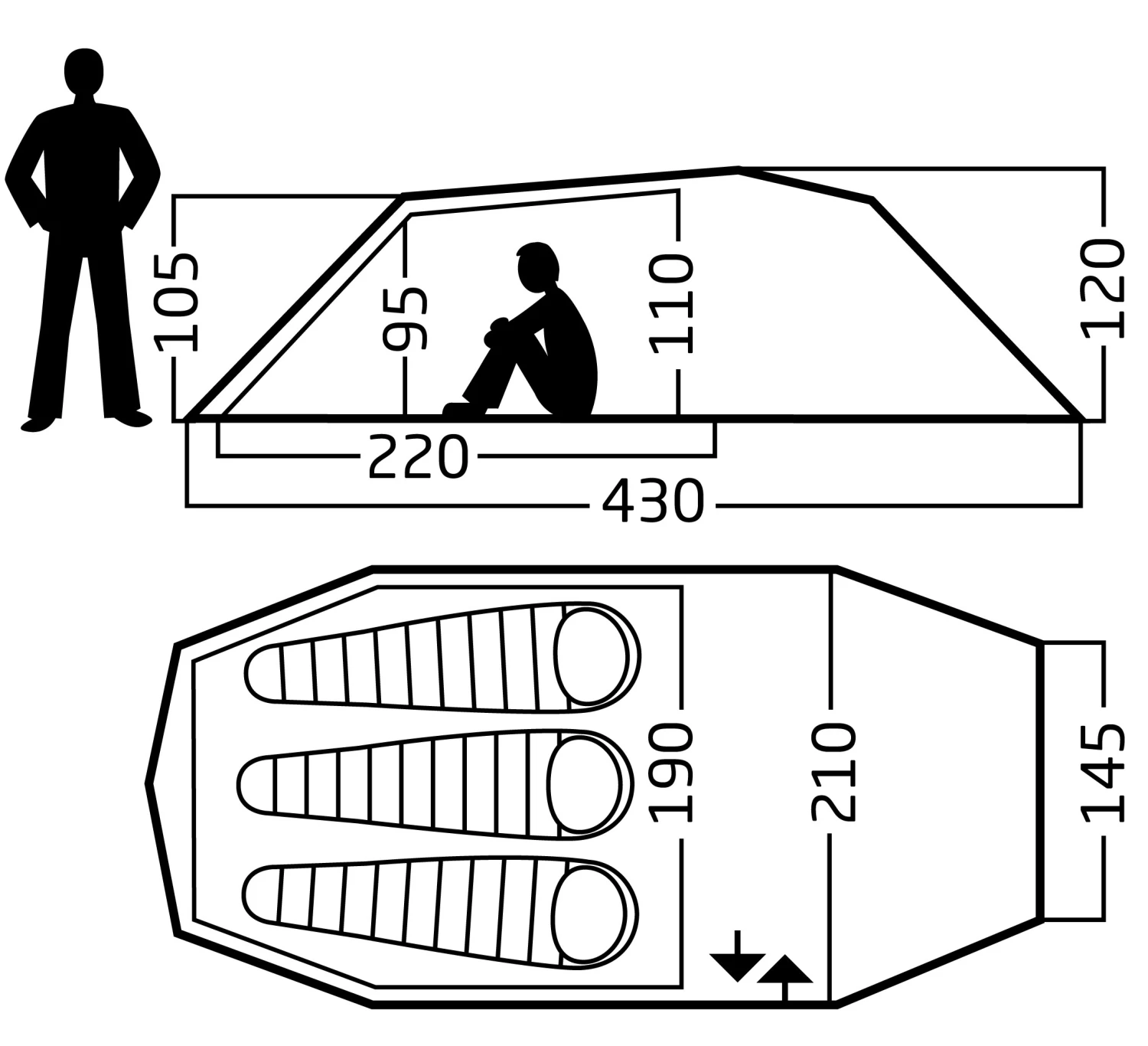 – Einzeln aufgestelltes Außenzelt, aerodynamische Tunnelkonstruktion