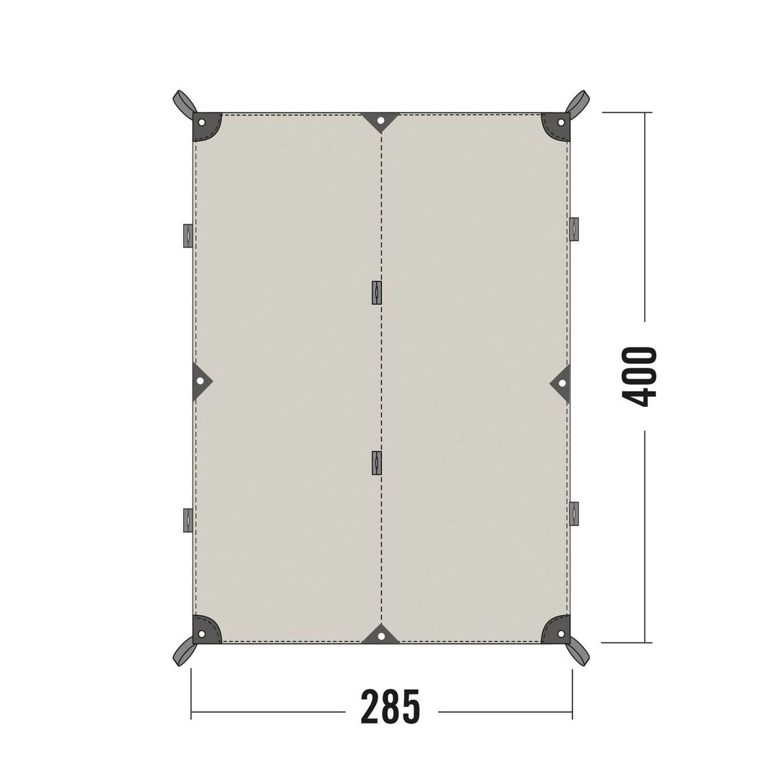 Tarp aus reißfestem Baumwollmischgewebe mit den Maßen 285 x 400 cm. Das rechteckige Tarp 4 TC ist dank des besonders UV-beständigen Materials ein idealer Schattenspender in heißen Regionen.