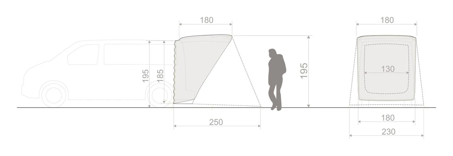 Die Idee ist so genial wie einfach – mit dem Vaude Drive Van Trunk Zelt verwandelt sich die Kofferraumklappe und der sich unter und hinter ihr befindliche Raum blitzschnell in ein großes Vorzelt! In Kombination mit dem Kofferraum selbst entsteht so viel Platz zum Schlafen, Kochen und Beisammensitzen. Das Drive Van Trunk lässt sich dabei besonders vielseitig einsetzen – es passt sich durch seine raffinierte Abspanngurt-Konstruktion verschiedenen Autotypen an und lässt sich auf beiden Seiten aufklappen. Das Vorzelt kann so an Fahrzeugen in VW Bus-Größe und Kastenwagen wie z. B. den VW Caddy montiert werden und verwandelt den Van in ein Campingmobil. Die geöffnete Kofferraumklappe bildet dabei das tragende Element der Zeltkonstruktion und ermöglicht durch die so entstehende Stehhöhe ein verrenkungsfreies Umziehen oder sogar Duschen mit der nötigen Privatsphäre. Der Platz im Vorzelt bietet reichlich Stauraum oder sogar Platz zum Kochen und Essen mit zwei Stühlen und einem kleinen Tisch. Das Zelt am Kofferraum sorgt für eine optimale Belüftung im sicheren Fahrzeugraum und bietet dabei die nötige Privatsphäre.