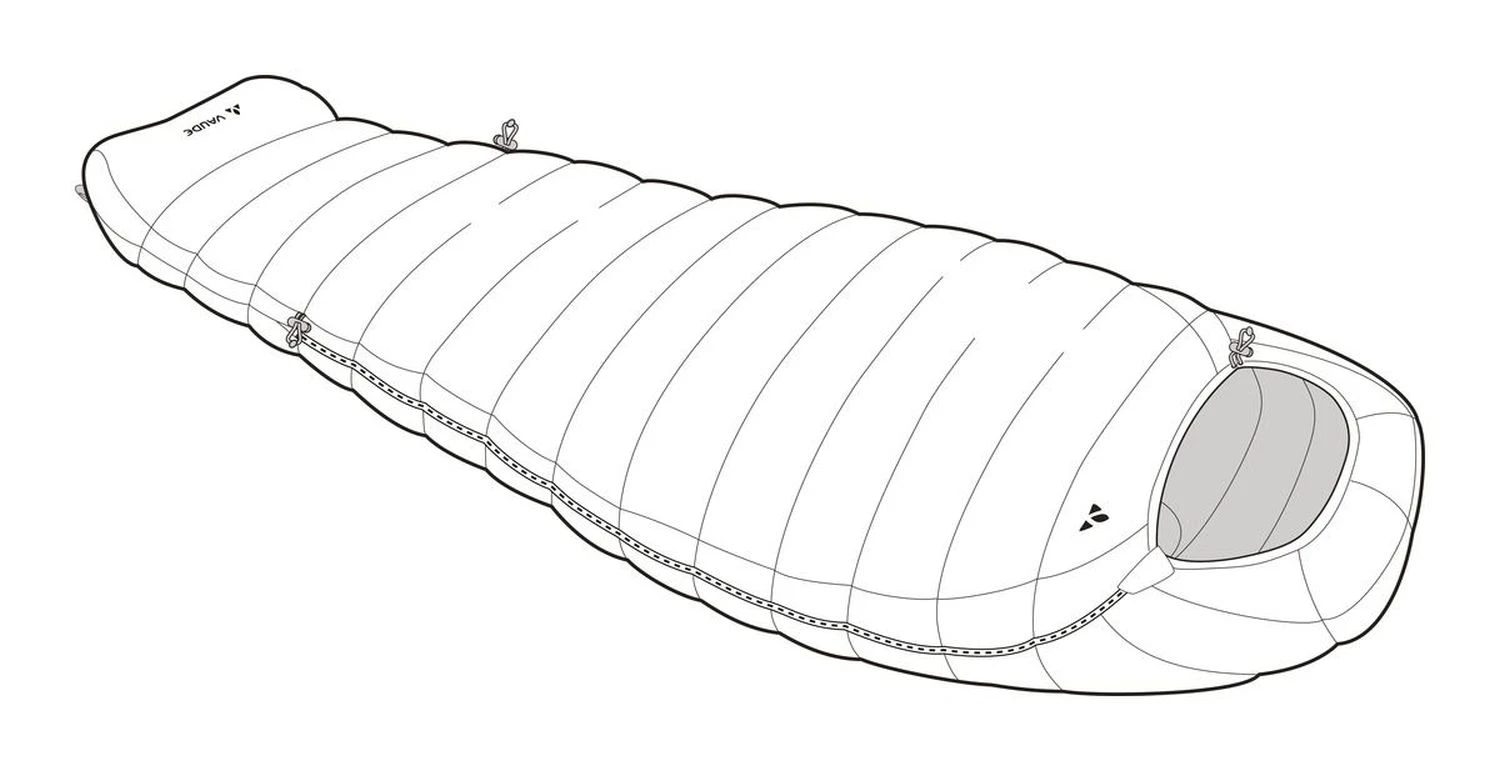 Der Rotstein 200 DWN ist ein Leichtgewicht für den Sommer. Der Mumienschlafsack in leichter, schräger H-Kammer-Konstruktion ist mit 200 Gramm hochwertiger, wasserabweisender 800 cuin Entendaune gefüllt, die gemäß dem Responsible Down Standard (RDS) gewonnen wurde. Das Außenmaterial des superleichten, sehr klein verpackbaren Daunenschlafsacks besteht aus 100% recyceltem Polyestermaterial und überzeugt durch ein geringes Gewicht bei gleichzeitig hoher Abriebfestigkeit. Praktisch: Der Schlafsack lässt sich mit wenigen Handgriffen stufenlos um 25-20 cm in der Länge verstellen. Wärmekragen und Kapuze können mit einem durchdachten Kordelsystem schnell und unkompliziert angepasst werden; die Füße sind in einer ergonomischen, mollig warmen 2D-Fußbox untergebracht. Der Schnitt ist wärme- und volumenoptimiert, garantiert dabei aber volle Bewegungsfreiheit. Die verwendeten Materialien sind bluesign® zertifiziert. Dieses Produkt ist mit Eco Finish umweltfreundlich wasserabweisend ohne Fluorcarbone (PFC) hergestellt. Das VAUDE Green Shape-Label steht für ein umweltfreundliches, funktionelles Produkt aus nachhaltigen Materialien.